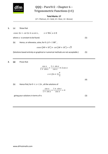 Pure Year 2 Chapter 6 Trigonometric Functions Teaching Resources